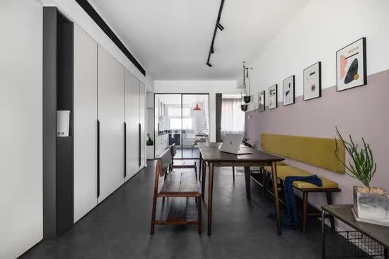 去掉繁重的布藝沙發(fā)和茶幾,換成實木長桌,客廳就成了多功能空間,既是餐廳,也可以是會客區(qū),還可以是辦公區(qū)。多種需求,一個空間就能滿足。